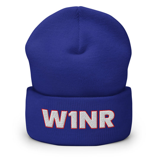 W1NR red and white Cuffed Beanie